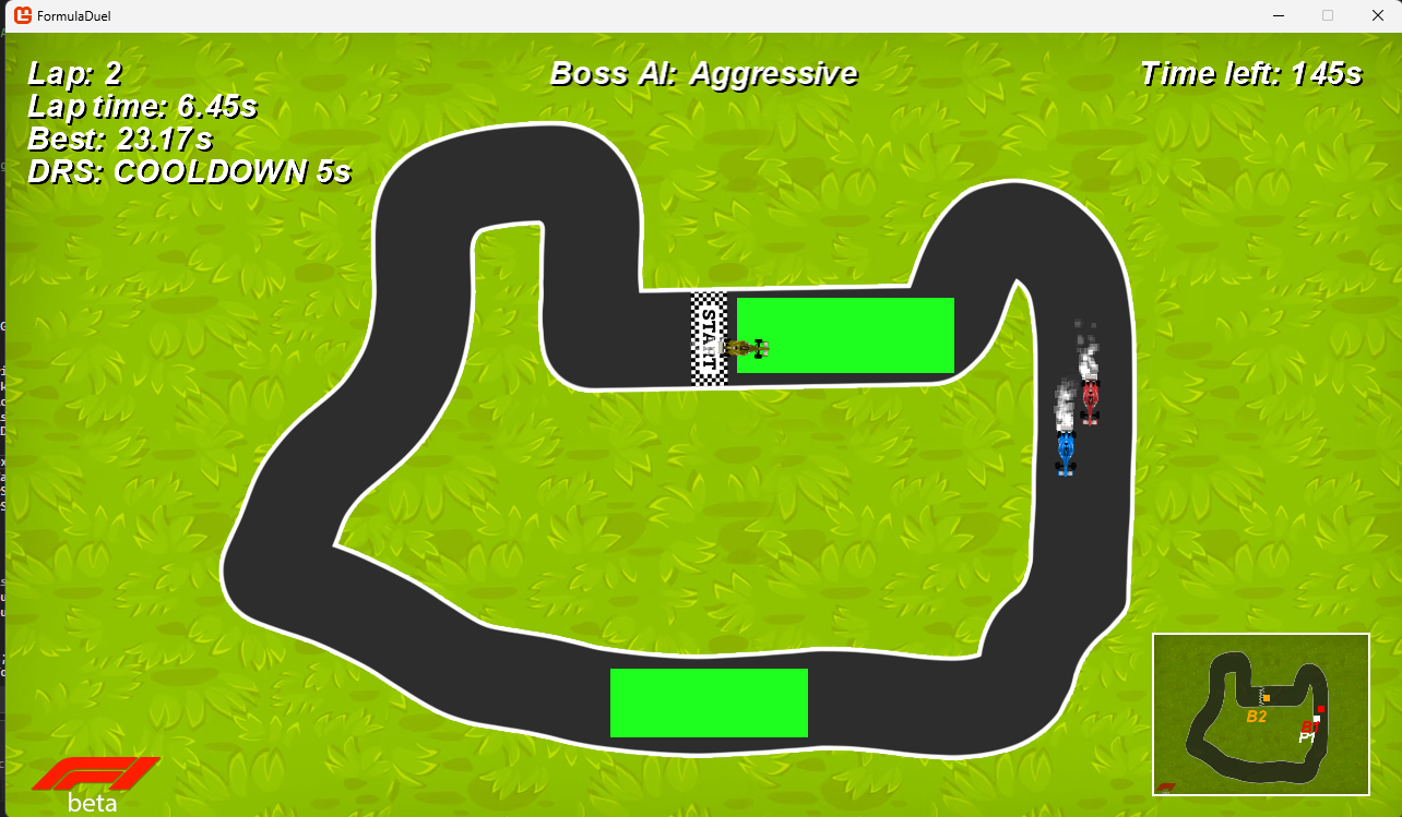 Race against intelligent AI opponents in this top-down F1 racing game!